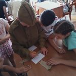 Ребята приняли участие в играх: «Шифровальщики», «Лесная тропинка», «Рюкзак партизана», пели песни военных лет. А в завершении мероприятия всех участников пригласили на самый настоящий партизанский обед.