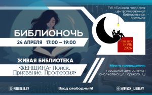 В программе: — выставка-панорама «Белорусская женщина: труд, ответственность, созидание» — выступление спикеров: Колодич Светлана Ивановна, психолог «Стрессоустойчивость — основа профессиональных качеств эксперта» Солдатова Анастасия Павловна, врач общей практики «Береги здоровье смолоду» Пискун Ирина Николаевна, эксперт по эфирным маслам «Секретный ассистент в любой профессии» — мастер-классы — музыкальный час Место проведения: городская центральная библиотека (ул. Горького, …